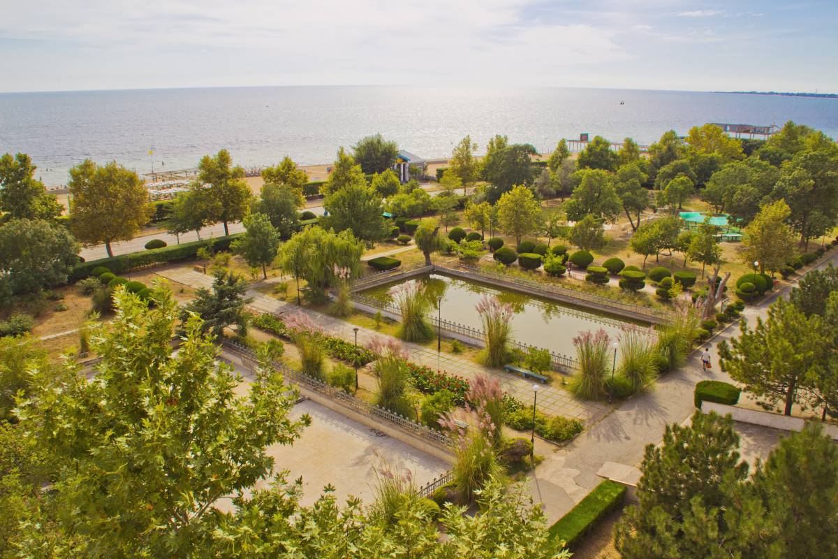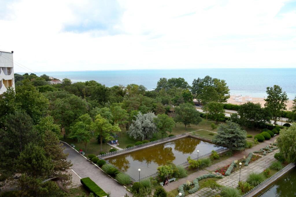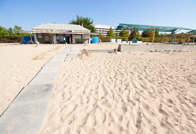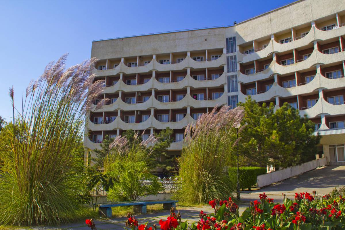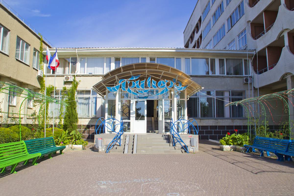 Расположен на самом берегу Черного моря, в 500 метрах от соленого озера Мойнаки, в центральной части г. Евпатория. В прекрасной зеленой парковой зоне. Общая площадь 8,9 га, территория парковой зоны 4,6 га, имеет собственный пляж площадью 1,7 га. Санаторий «Приморье»» — это многопрофильная здравница на 461 место.