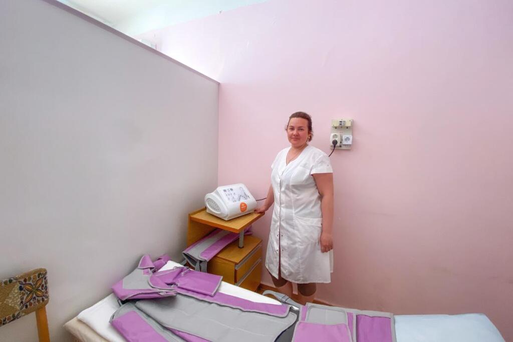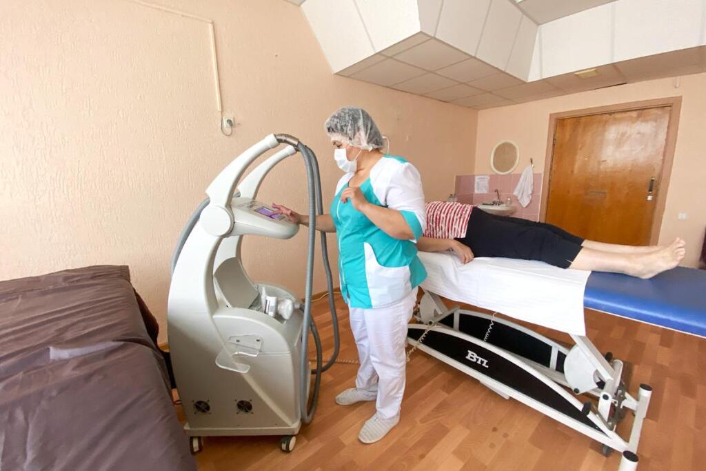 В санатории есть два лечебных бассейна с минеральной водой, ванное отделение на 10 ванн, 2 кабинета гидромассажа, кабинеты грязелечения, полостного грязелечения, электрогрязелечения, физиотерапии, синглетно-кислородной терапии, аромотерапии, 3 зала ЛФК, гинекологический кабинет, кабинет функциональной диагностики, клинико-диагностическая, биохимическая лаборатории, рентгенкабинет, кабинет ультразвуковой диагностики, бювет привозной минеральной воды.